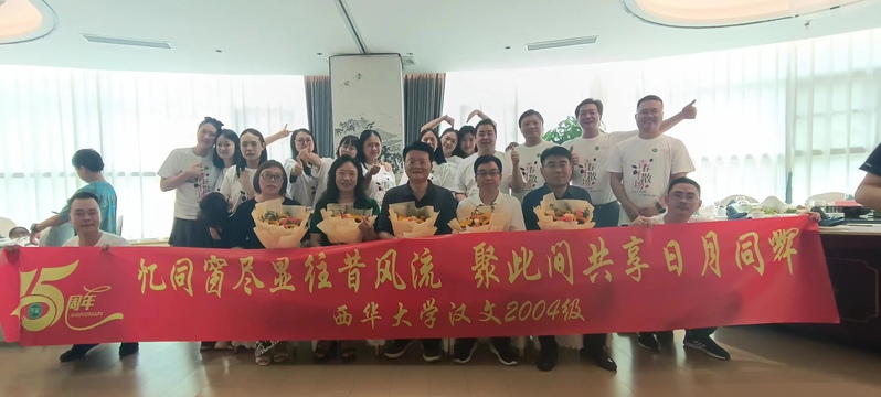 2023年7月22日,西华大学bw西汉姆联04级汉文组织举办15周年同学聚会,昔日的老同学们共赴“十五沧桑情依旧,桃李携手恩师情”的人生之约,一起怀念美好时光。学院院长潘殊闲,学院党委副书记、纪委书记徐攀,辅导员徐薇老师,任课教师王方、张雪梅老师受邀出席。