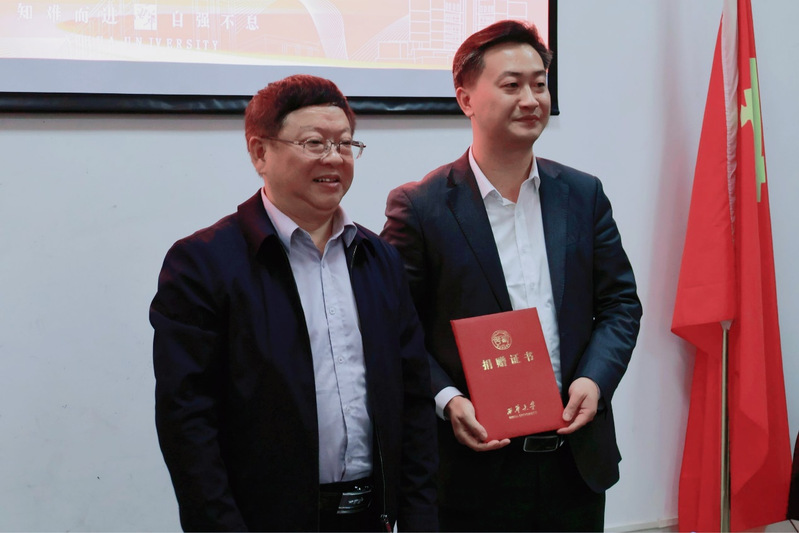 图4 潘殊闲代表学院接受刘礼校友捐赠