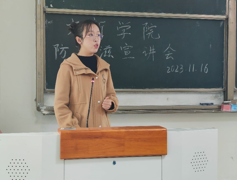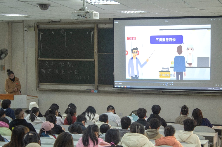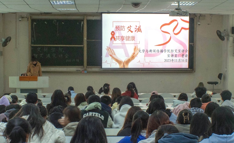 11月16日下午,文新学院在4A-104举办“预防艾滋,共享健康”主题宣讲活动,学院2023级全体本科生、研究生参加宣讲会。本次宣讲活动由防艾宣讲员曹渝担任主讲人,团委宣传部副部长伍思丞主持分享会。