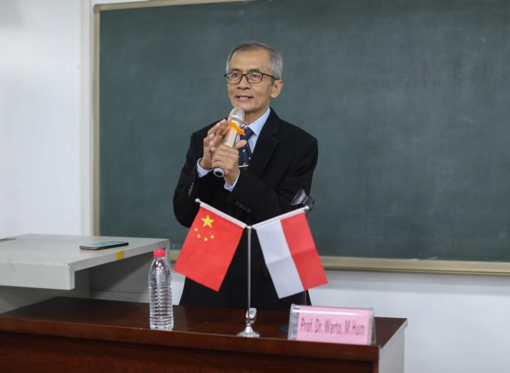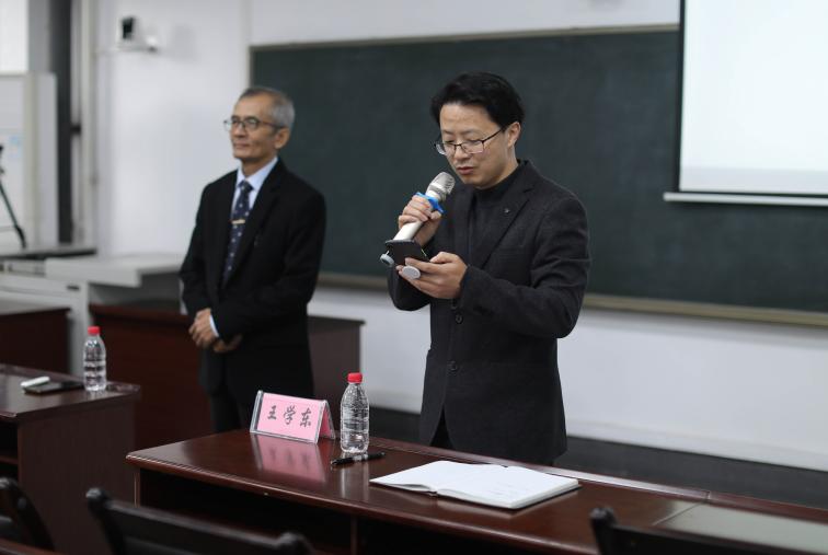 副院长王学东向同学们介绍印度尼西亚三一一大学的三位老师,并代表师生对他们的到来表示衷心的感谢和诚挚的欢迎。
