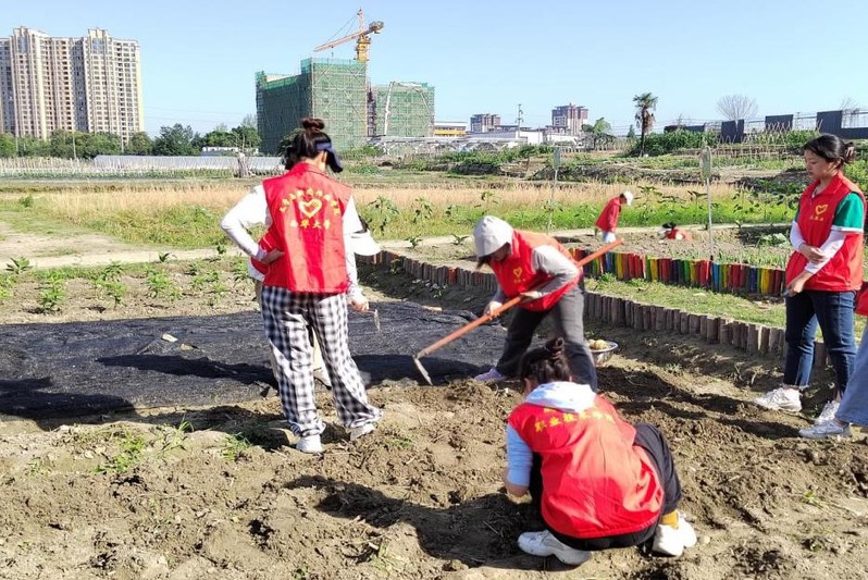 首先,社区负责人先介绍了本次活动的具体工作地点和相关内容,加深了志愿者们对本次活动的认识,随后将志愿者们分为5个小队,在几位工作人员的指导下在不同方位进行田间杂草的清理,用锄头镰刀等不同的工具清除田间杂草。