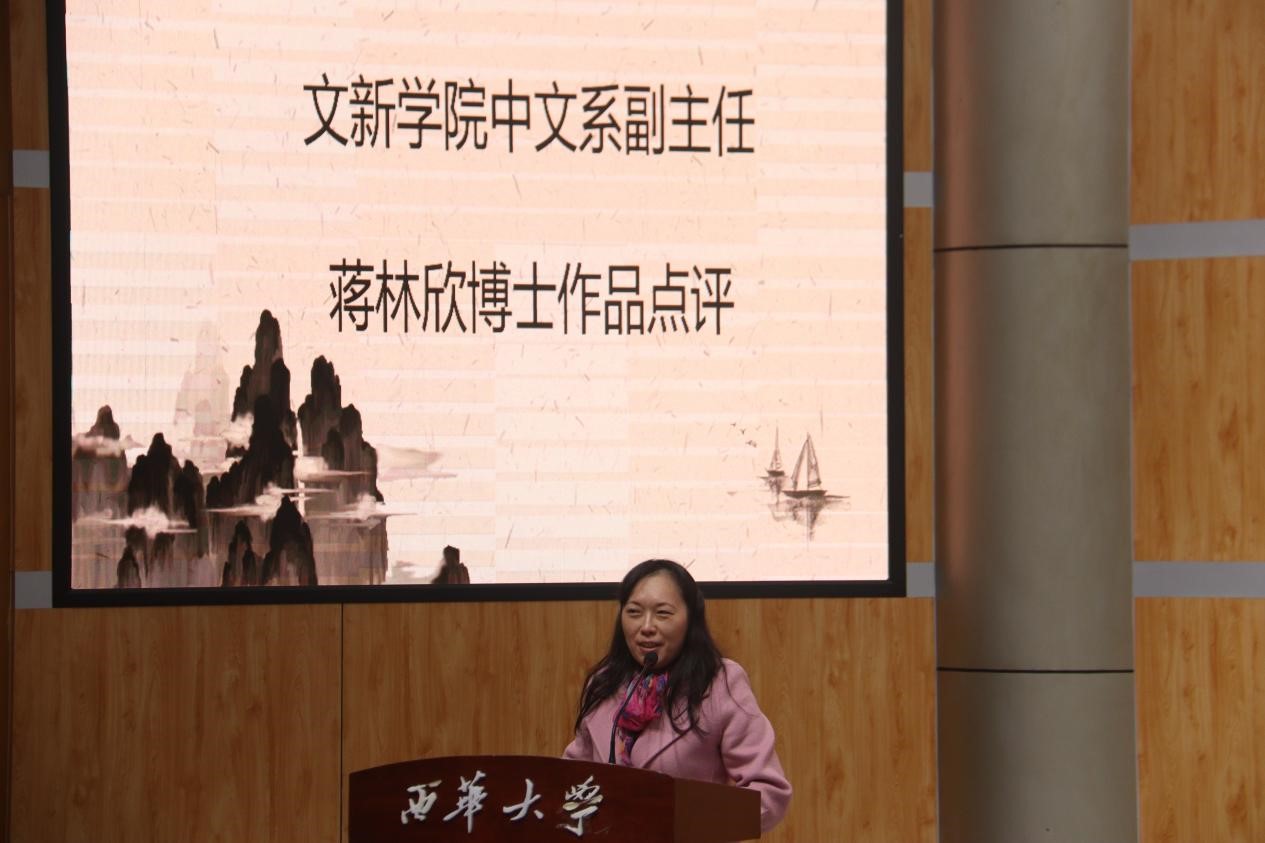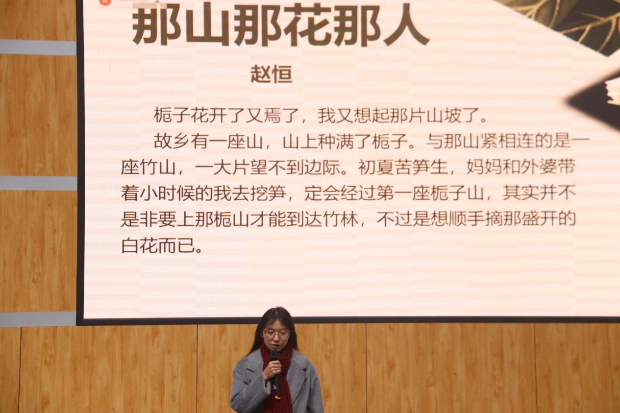 蒋林欣副主任代表评委进行作品点评。她肯定了参赛的朗诵文本题材的广泛性,选手们的朗诵感情充沛真挚,语言优美流畅。但同时指出了选手作品的缺憾,她表示同学们目前的人生阅历尚浅,写作经验的积累不够深厚,作品离“优秀”的评判标准还有一定的距离,但现在正是梦想开始的最好时机,期望同学们能在以后的人生中积累写作经验并获得更多感悟,怀揣文学的梦想,做一个追梦人。
