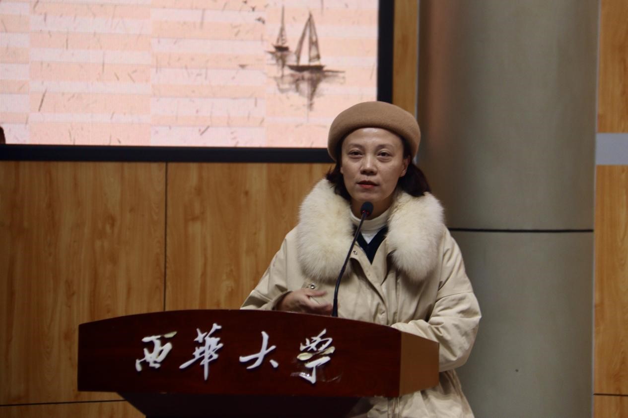 副院长范佳博士代表文新学院致辞。她首先肯定了《写作》课程作为西华大学的国家级一流课程,在课程建设过程中积极探索课程设计上的创新和突破。无论是以学生学习为中心的实践写作,以提升学生写作能力的写作实践;还是以实践训练为中心的多维写作,以测评机制为中心的联动创新,都是《写作》课程教师充分贯彻“两性一度”教学目标的体现。此次朗诵比赛展现了《写作》课程的创新性与实操性,让学生将课堂的系统写作理论,转化为现实的文章或者作品。同时,她希望同学们通过各种实践平台,多多接触与行业相关的事物,让所学的专业知识与实践和社会需求紧密结合起来。