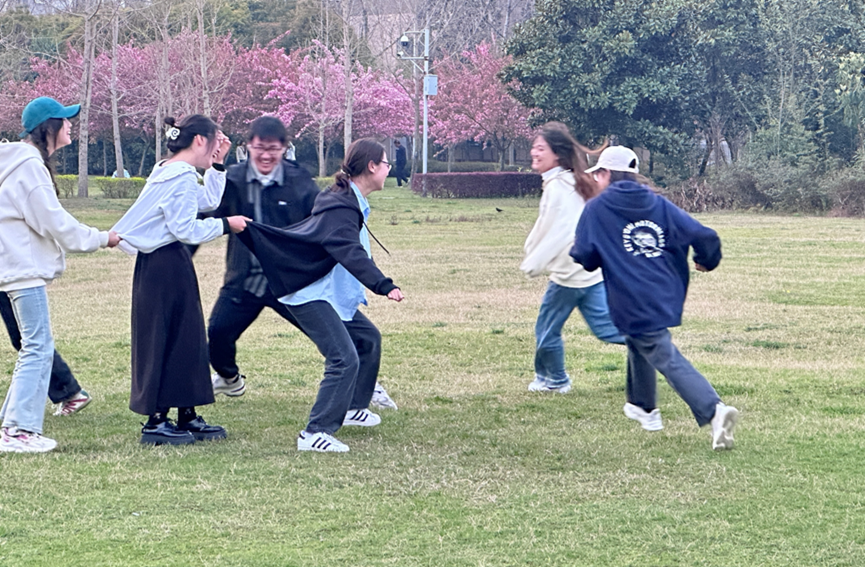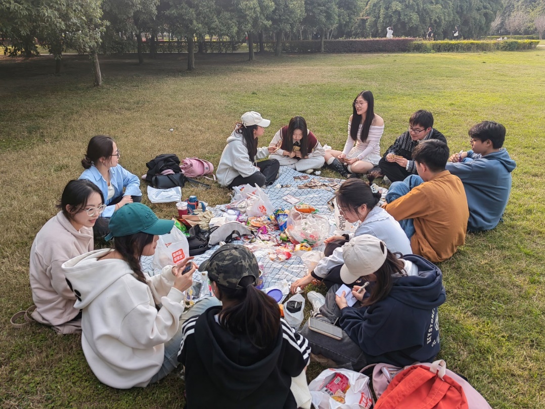 此外,分享各自的生活也是此次聚会的重要环节。大家围坐在草坪上,分享着各自近期的生活点滴和趣事,暂时忘却了烦恼,只在春和景明中留下欢声笑语。这种非正式的交流方式深得学生干部们的喜爱,让成员们在轻松愉悦的氛围中加强了对彼此的了解,也增强了大家对部门的认同感和归属感。