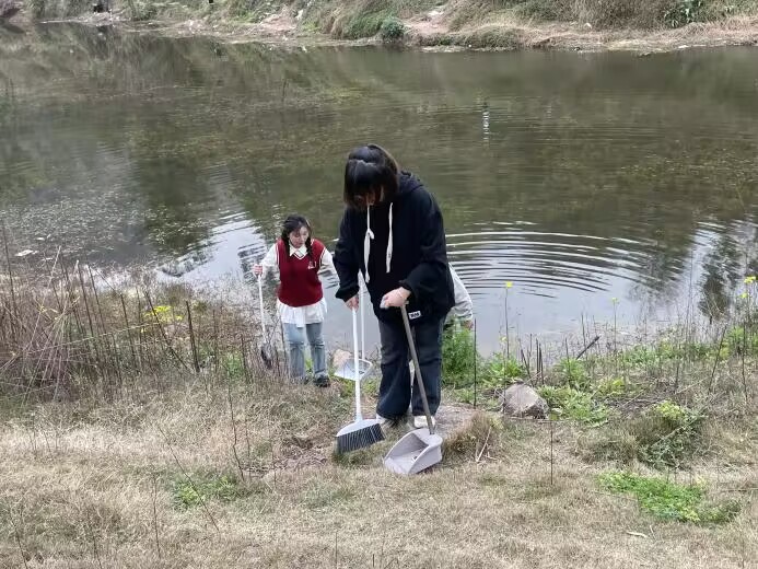 图6 志愿者开展校内河堤清洁活动