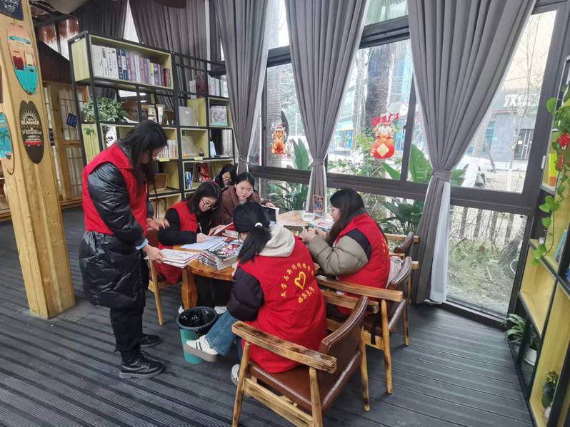 图2 志愿者在思源社区农家书屋对图书进行分类整理