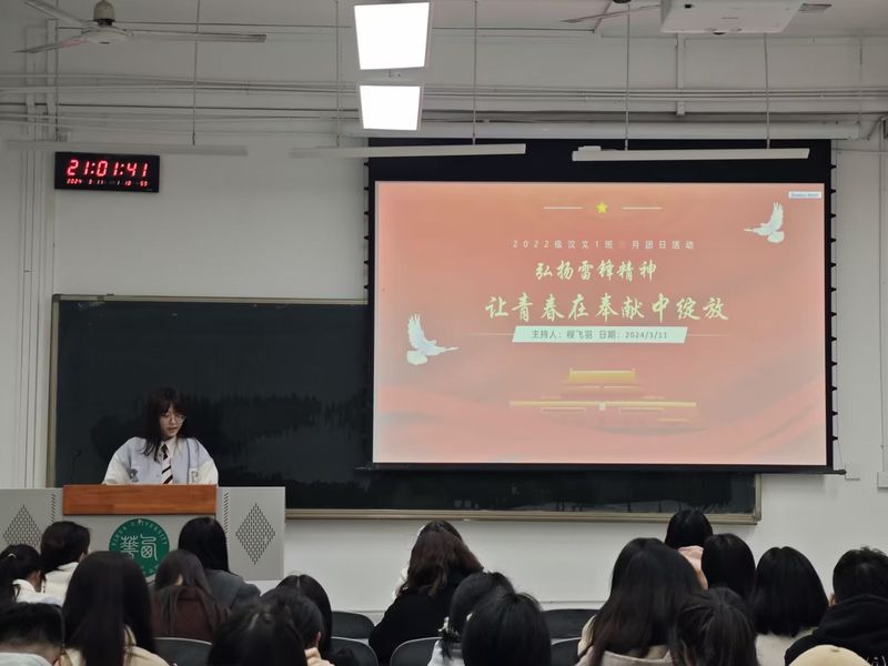 在全院范围内,组织各班级以学习雷锋精神为主线,以主题班会或团日活动等多种形式学习雷锋精神的时代内涵及实践要求,讲好新时代的雷锋故事,带领同学们深入学习的同时鼓励同学们走入基层,展现青年的志愿力量。