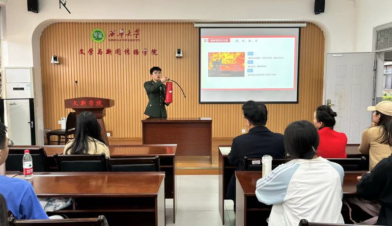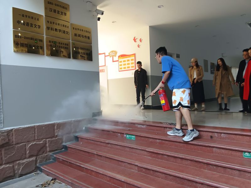 首先,学院邀请退役士兵汉语言文学专业21级4班许义于6A127教室开展防火安全教育宣传讲座,对师生进行了灭火器械识别与应用技能培训。同学们认真聆听并做了笔记,加深了对消防器材操作的使用理解。