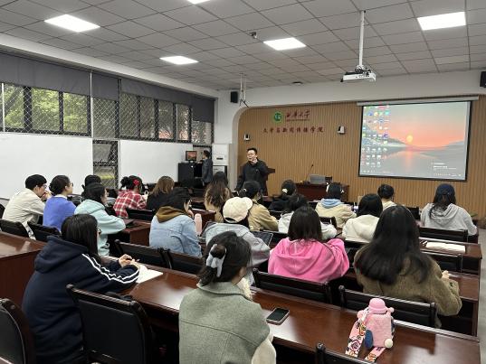 2024年4月7日晚6点30分,西华大学古典文献学专业“乐道”讲座第二讲在西华大学6教A座127室举行。文新学院文产系余华老师以“我的学术研究心得”为题进行了精彩的演讲。本次讲座由中文系王珂副教授主持,古典文献学专业研一、研二的同学及部分有志于从事学术研究的本科同学到场聆听讲座。