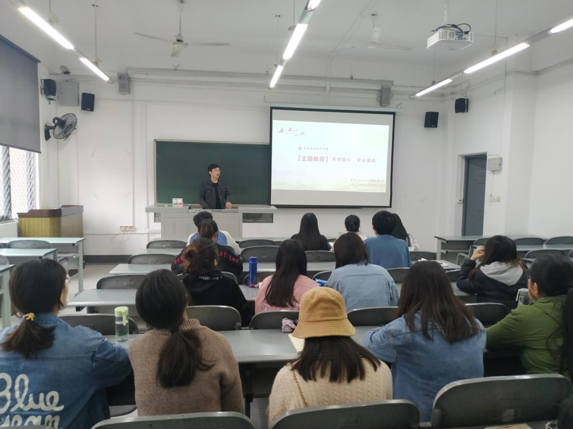 为扎实推进“两学一做”学习教育常态化制度化,推动“不忘初心,牢记使命”主题教育深入开展,增强学生党员的爱国情怀和责任意识,推动全党更加自觉地为实现新时代党的历史使命不懈奋斗,10月23日中午,学生第四党支部组织全体支部党员在6C-118教室开展“不忘初心、牢记使命”党支部书记讲党课主题教育活动,党支部书记张老师、支部20名党员参加会议。