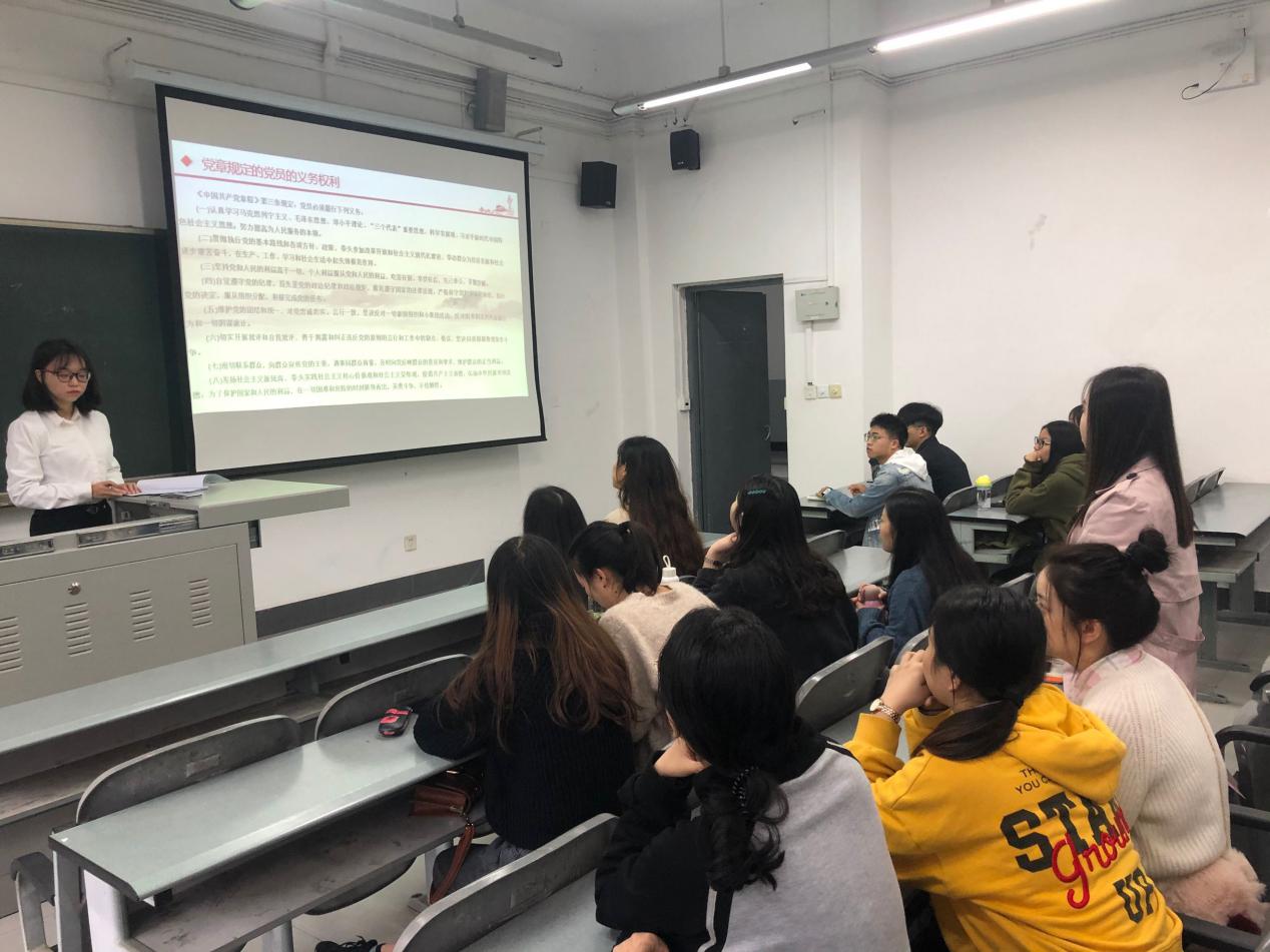 叶露老师在此次党课中认真传达了关于“不忘初心、牢记使命”主题教育工作会议的重要讲话精神,强调了提高政治站位,切实增强思想自觉和行动自觉;贯彻工作要求,统筹安排有序推进主题教育;做实党支部学习教育和检视整改;加强组织领导,确保主题教育取得实效等四个方面的总体要求。
