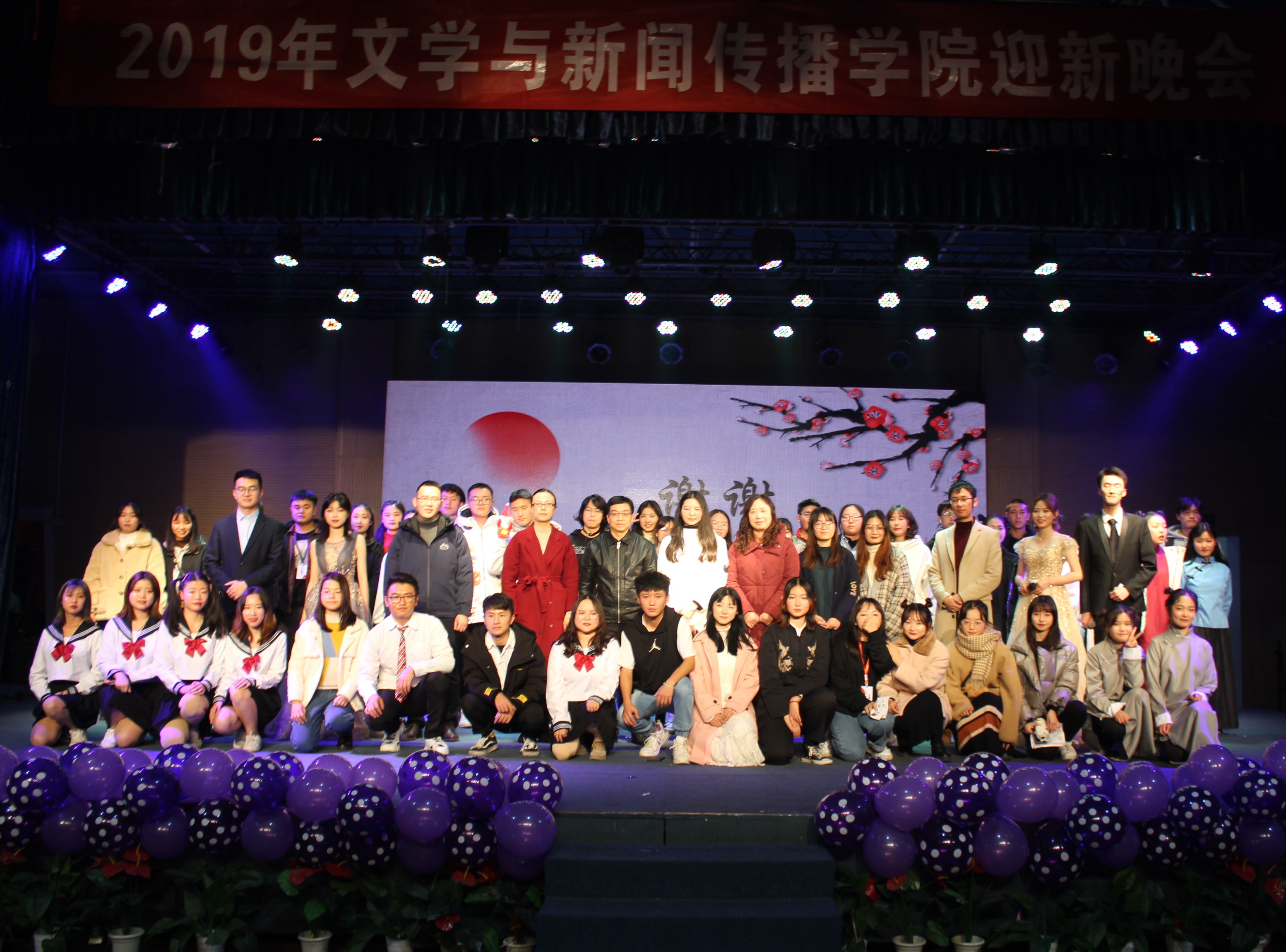演出结束,学院领导、老师与参演人员、团学成员上台合照。晚会充分展示了文新学子的才艺与朝气,激发了学院师生奋发向上、为学院争光的信心。