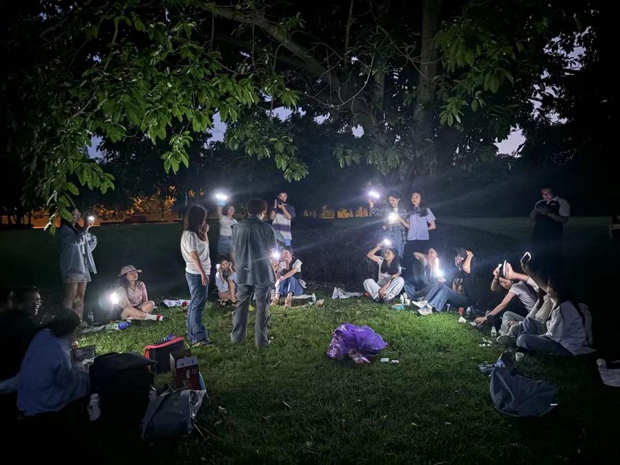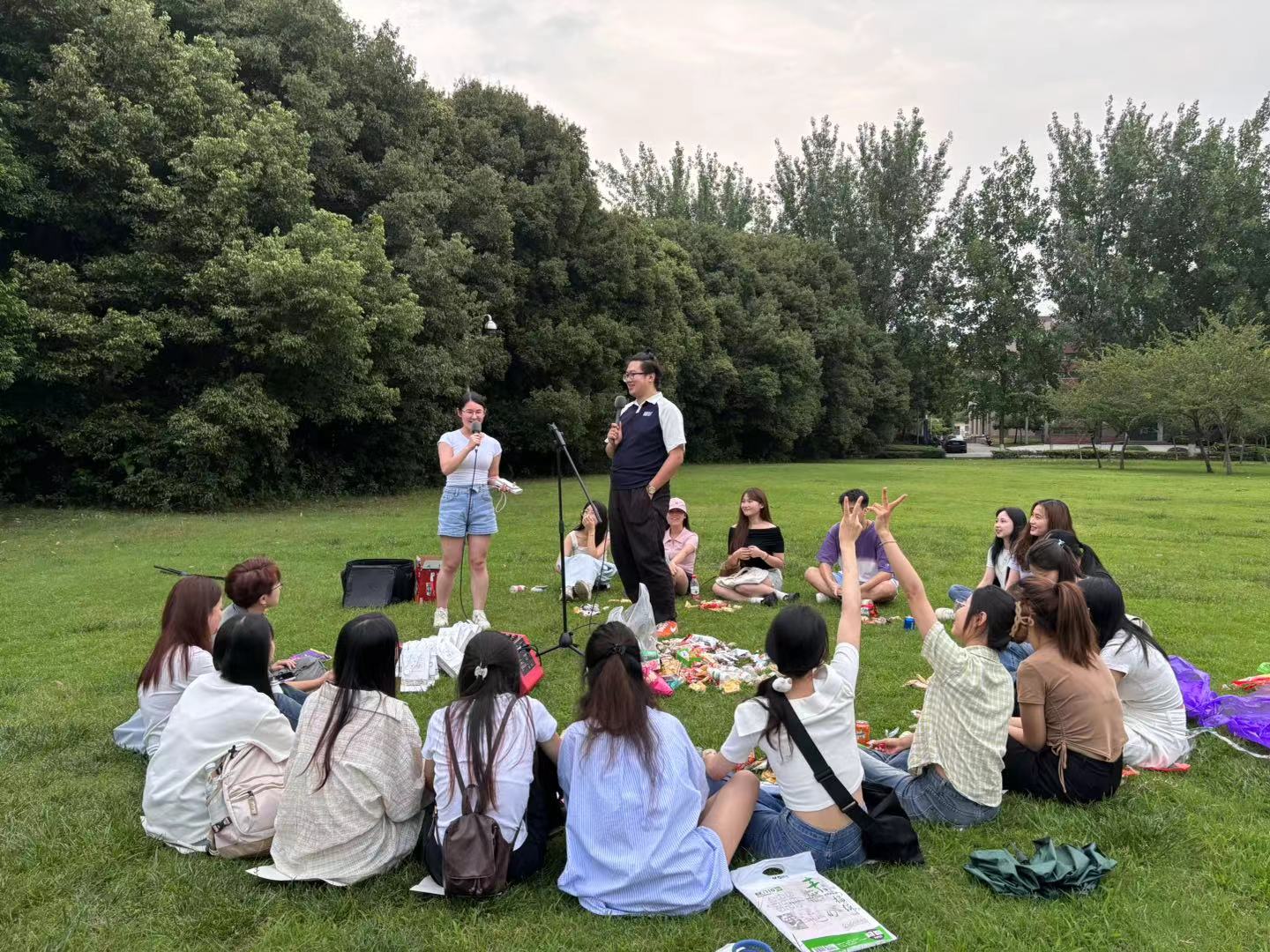 6月1日晚上,为欢送2024届毕业生,增进同窗情谊,学院网络与新媒体专业2021级1班在图书馆旁的草坪举行欢送提前批毕业生的草坪音乐晚会。毕业班辅导员任焦阳、提前批毕业同学、班委干部参加。