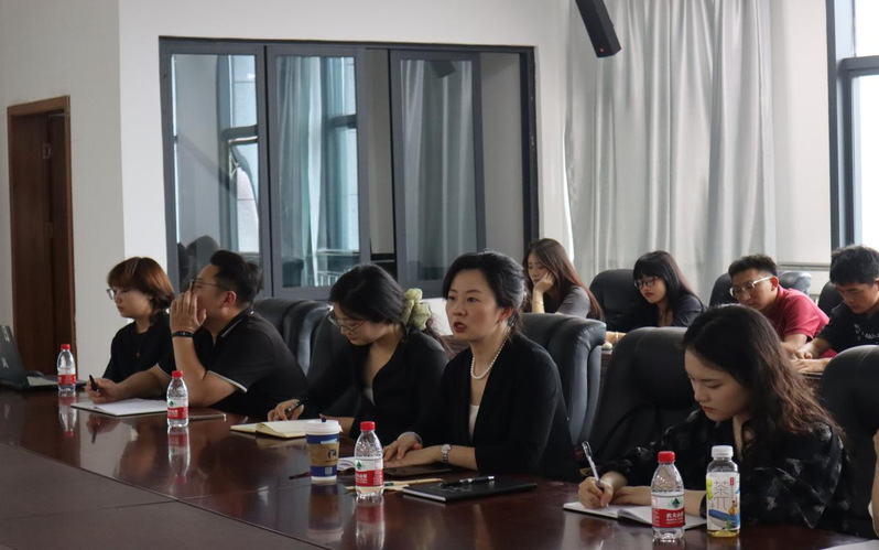 图为张雯欣书记向学院老师了解情况