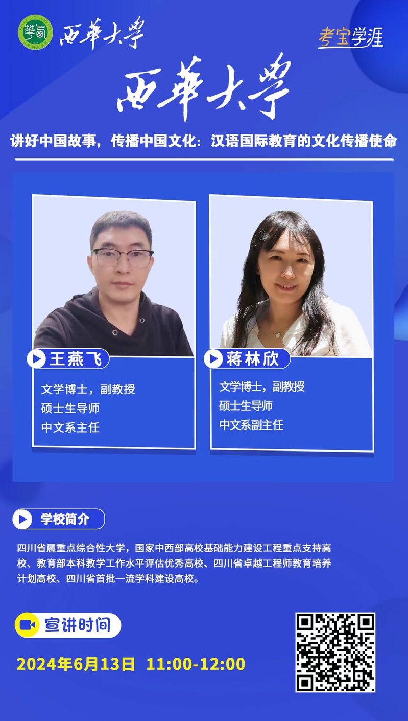 讲好中国故事,传播中国文化-----汉语国际教育专业介绍即将开始,如需要了解,请自行扫码登录,支持直播回放。