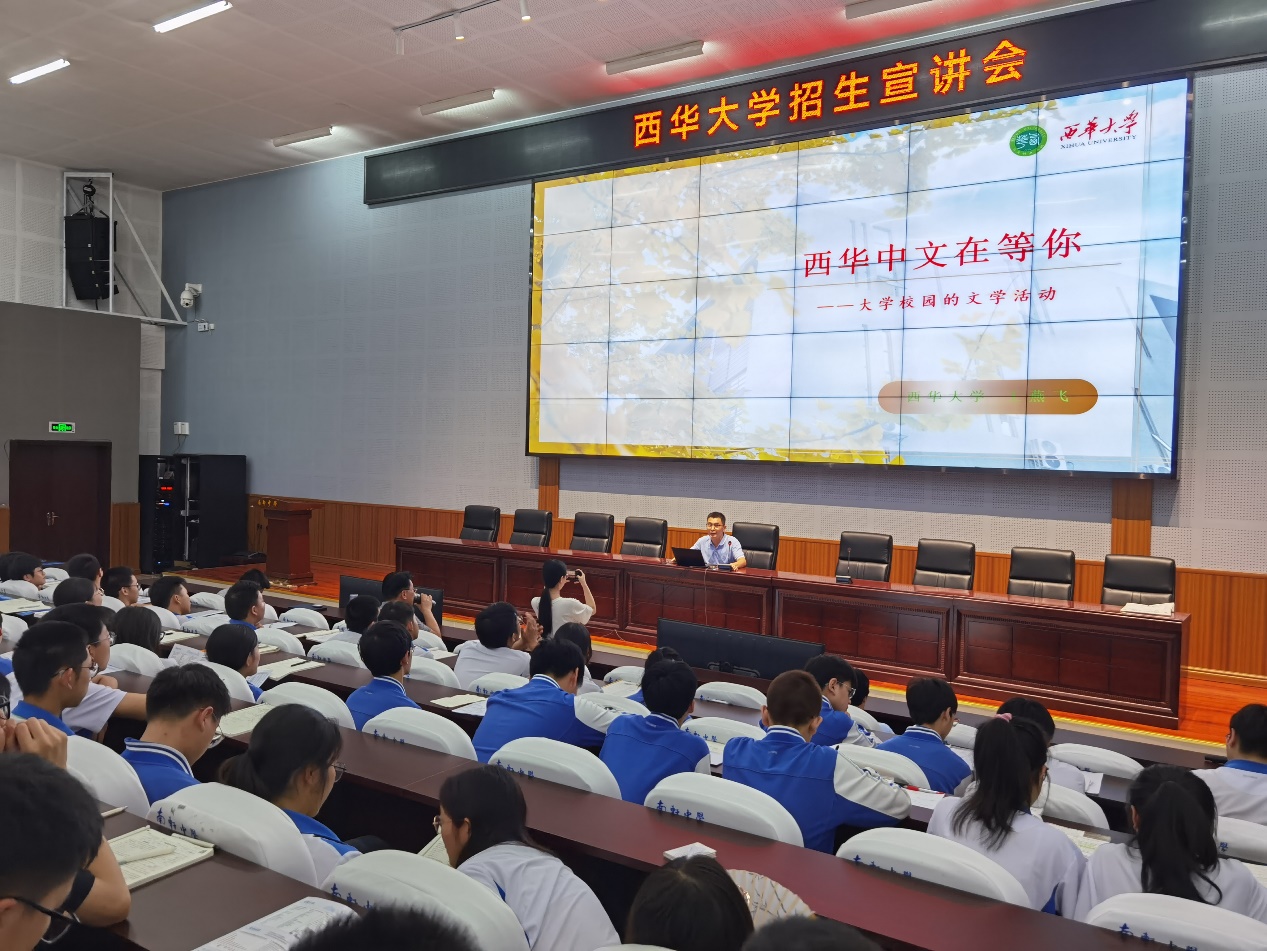 学院此次走访中学受到了中学领导班子热烈欢迎,两所中学分别组织了新高三200余名学生参加宣讲会,宣讲会由徐攀主持。在播放校院宣传片后,宣讲组成员分别以“西华大学有你更精彩”、“文新学院欢迎你”、“大学校园的文学活动”、“到西华,成就未来新媒体人”、“西华大学近年招生录取情况、新高考”为主题,对西华大学、文新学院及专业作了简要而鲜明介绍,并勉励高三学子发奋苦读,努力成为新高考赢家。广大与会新高三学子听得极其专心,不时发出啧啧赞叹声,会后进行了相关咨询。中学校领导会后表示,宣讲会效果很好,欢迎各位专家以后再到中学举办讲座。