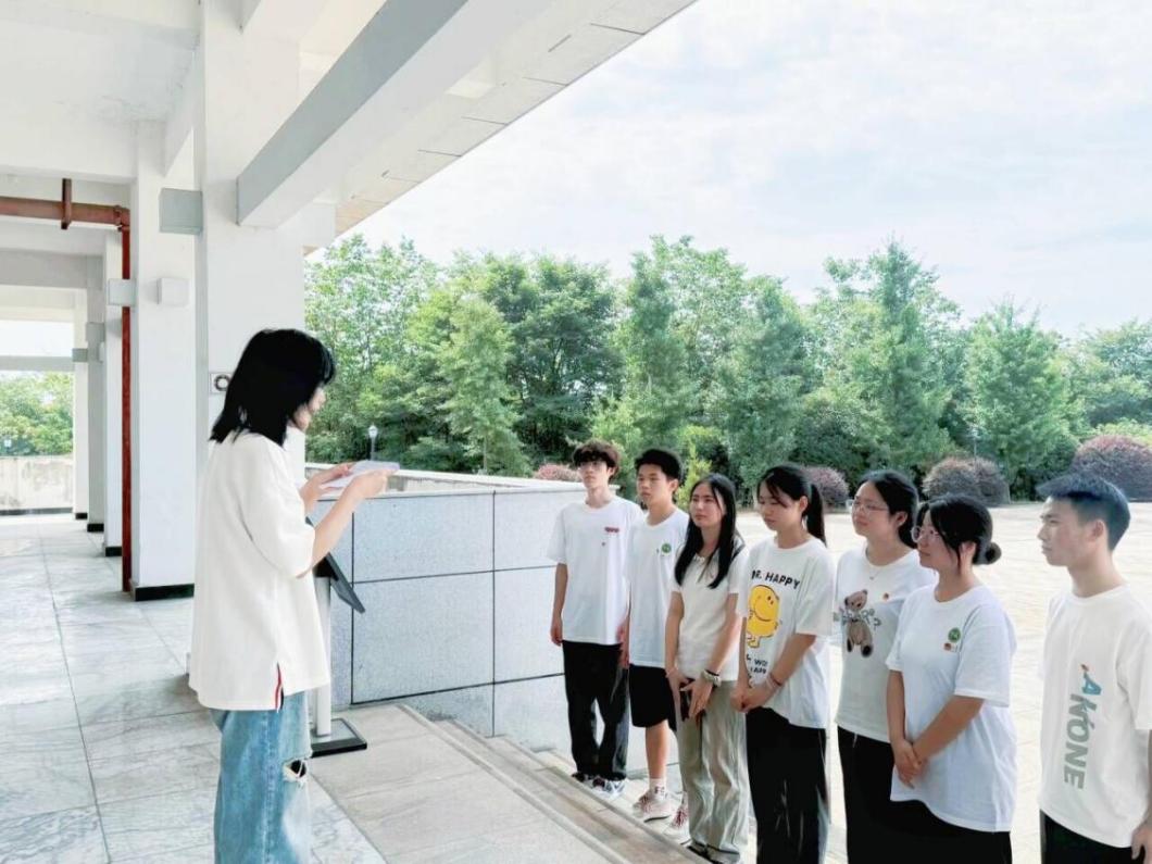 弘扬英烈精神,传颂英雄事迹。在纪念馆前,成员们分享革命先烈的英勇事迹,从地下工作者张大成的无畏牺牲,到抗日将士解固基的浴血奋战,再到武警官兵、公安干警的忠诚守护,这些光辉故事无不彰显着无私、无畏与崇高的革命精神。随后,队员们以诗歌朗诵抒发对先烈的无限敬仰与感激,立志为祖国的繁荣昌盛贡献青春力量。