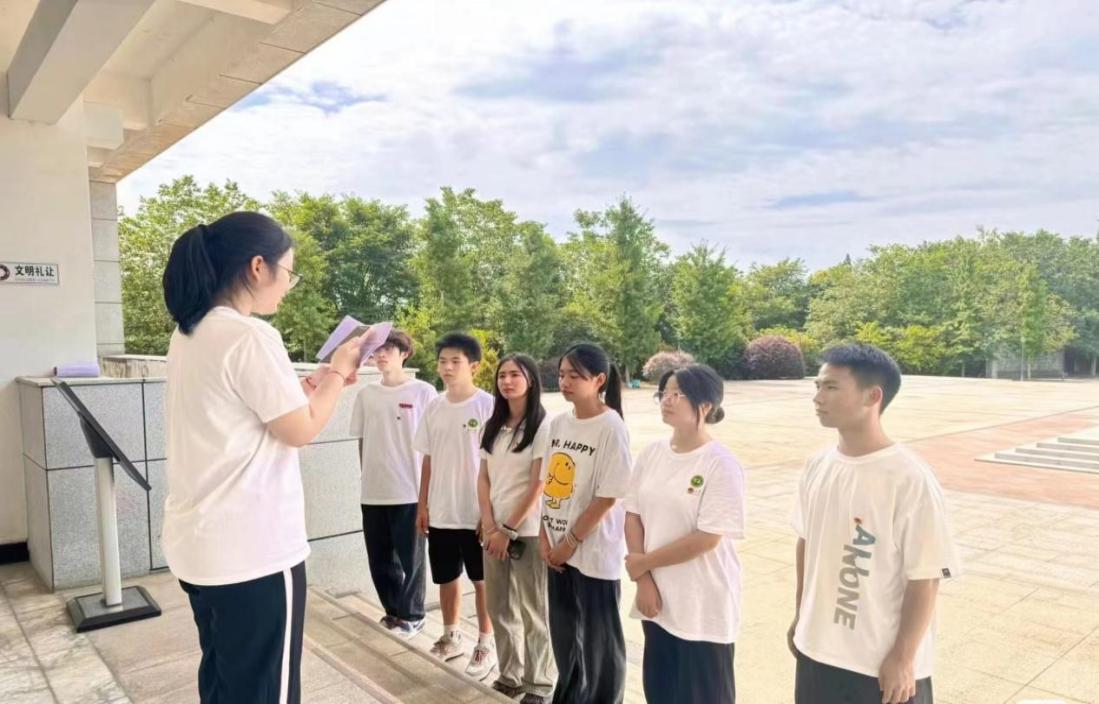 青春“红”途社会实践团团队成员整齐肃立,右手握拳,面向纪念碑进行庄严宣誓,一声声铿锵有力的誓言表达了对英雄先烈的缅怀。