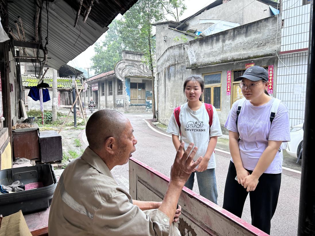 志愿者们与村里老人交流 彭怡欣供图