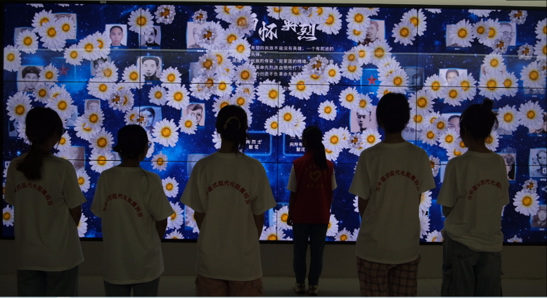 祭奠仪式结束后,全体成员来到革命烈士纪念馆,并跟随讲解员了解英烈的生平事迹。馆内珍贵的照片和文献资料生动再现了老一辈革命先烈波澜壮阔的峥嵘岁月,深深感染了在场的每一位听众。“去时,尚是少年之身,血肉之躯;归时,已是报国之躯,英雄之魂”,大家无不被革命先烈对党忠诚、追求真理、无私奉献、视死如归的大无畏民族精神和革命英雄气概所震撼,仿佛灵魂深处受到了一场红色精神的洗礼。成员们通过电子屏幕,再次为所有革命烈士献上了属于新时代的电子鲜花。