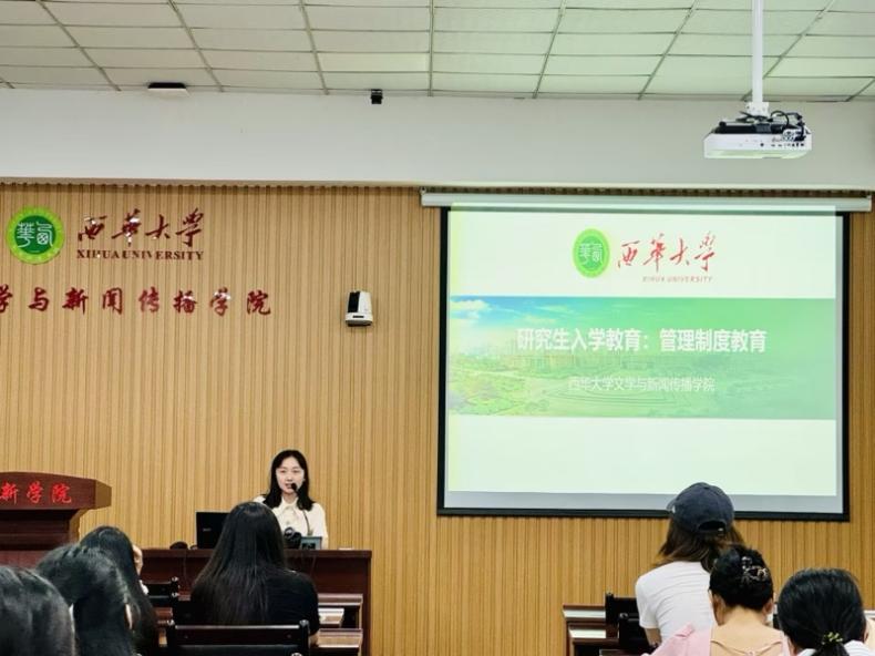 共筑学术梦想,规范管理先行。为使各研究生新生能够更好融入研究生生活,更快步入学术研究道路,2024年9月8日上午10点30分,bw西汉姆联在第六教学楼6A-127室举行“守纪律讲规矩 存敬畏守底线”研究生管理制度教育宣讲活动。本次活动由2024级研究生辅导员杜语彤老师做讲解,本院2024级中国语言文学、学科语文、新闻与传播方向研究生共计68名学生参与此次活动。