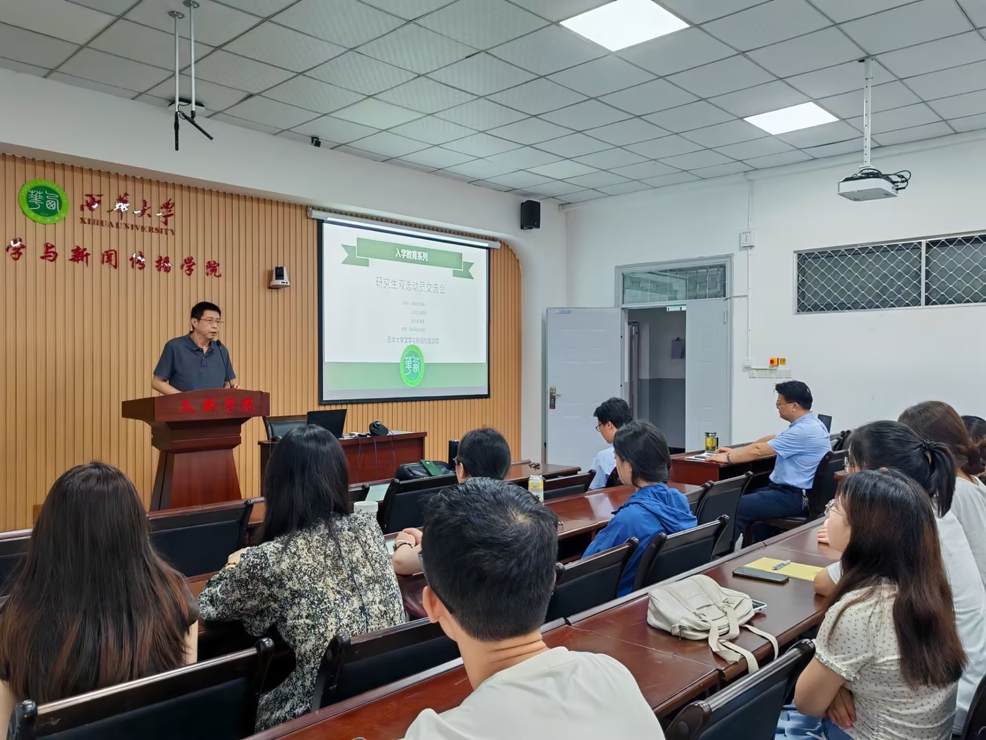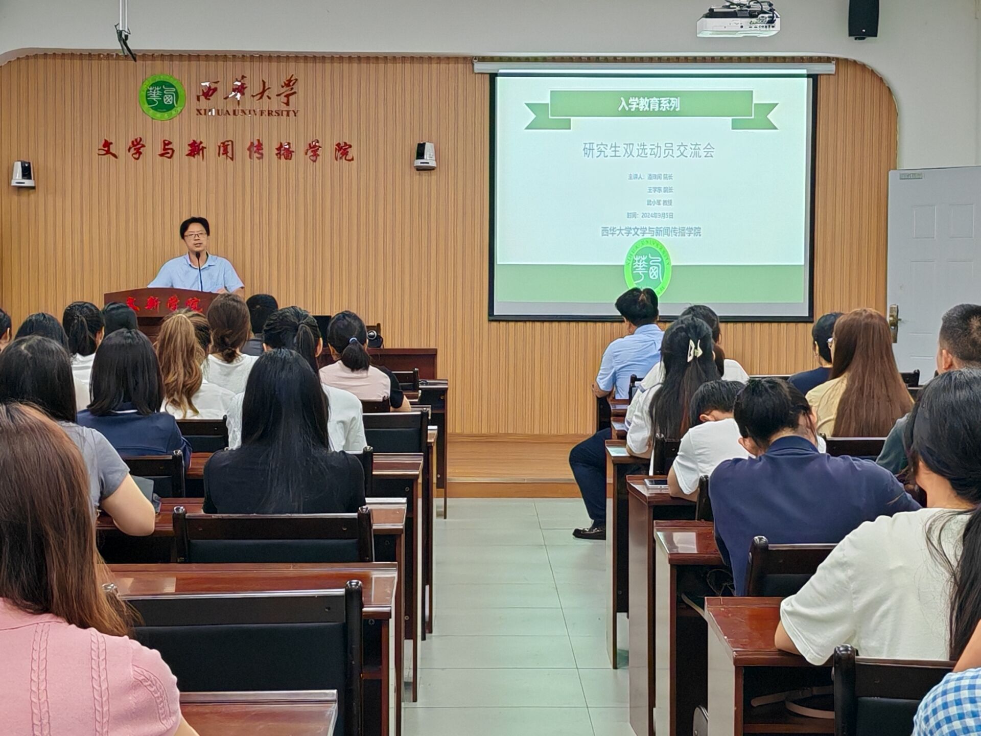 为促进学院师生之间的交流与沟通,做好2024级研究生与导师的双选工作,9月5月上午9点30分,我院2024级中国语言文学和学科教学(语文)专业研究生双选动员交流会于西华大学第六教学楼6A-127教室顺利举行。学院院长潘殊闲教授、副院长王学东教授、研究生导师武小军教授及2024级中国语言文学和学科教学(语文)两专业全体研究生新生出席了本次会议。