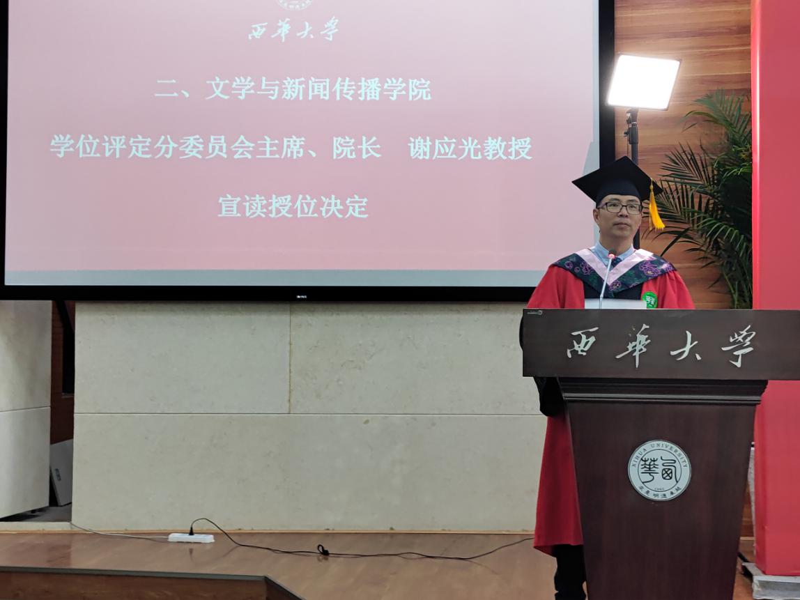 学院学位评定分委员会主席、院长谢应光教授宣读授位决定