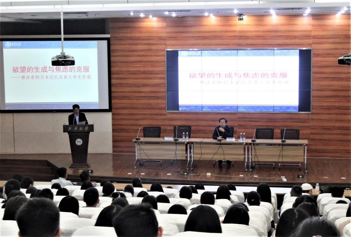 10月12日下午,bw西汉姆联在图书馆报告1厅举办了西华大学60周年校庆系列讲座暨bw西汉姆联“问渠论坛”,长江学者、四川大学文学与新闻学院院长李怡教授应邀以“日本体验与‘新诗郭沫若’的诞生”为主题作了一场高水平的学术讲座。bw西汉姆联副院长王学东教授主持讲座,200余名师生聆听讲座。