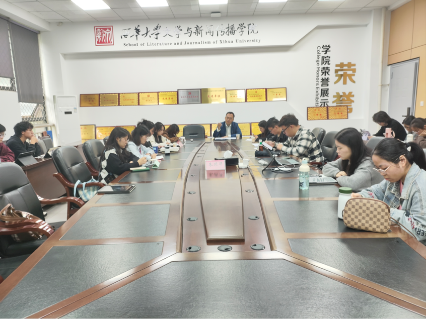 10月19日,秋风送爽,学院中国语言文学专业古代文学方向于6A-108会议室开展“取法乎上,共读经典”读书会。2023级、2024级古代文学方向研究生,2024级古典文献学方向部分研究生共同参与。读书会由中文系孟开元老师主持,2023级研究生刘媛媛、邓涛、尹佳馨,2024级研究生陈慧荟、徐艺嘉、车宇平进行了主题汇报。