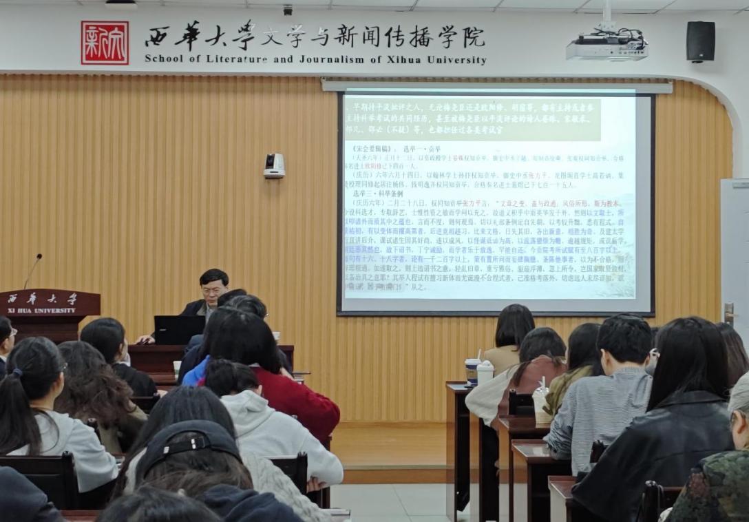 11月1日下午16:00,华东师范大学中文系彭国忠教授应我院邀请作“北宋平淡批评与科举考试”讲座,学院院长潘殊闲教授出席并主持本次讲座,学院相关学科教师,各年级本科生、研究生参加讲座。
