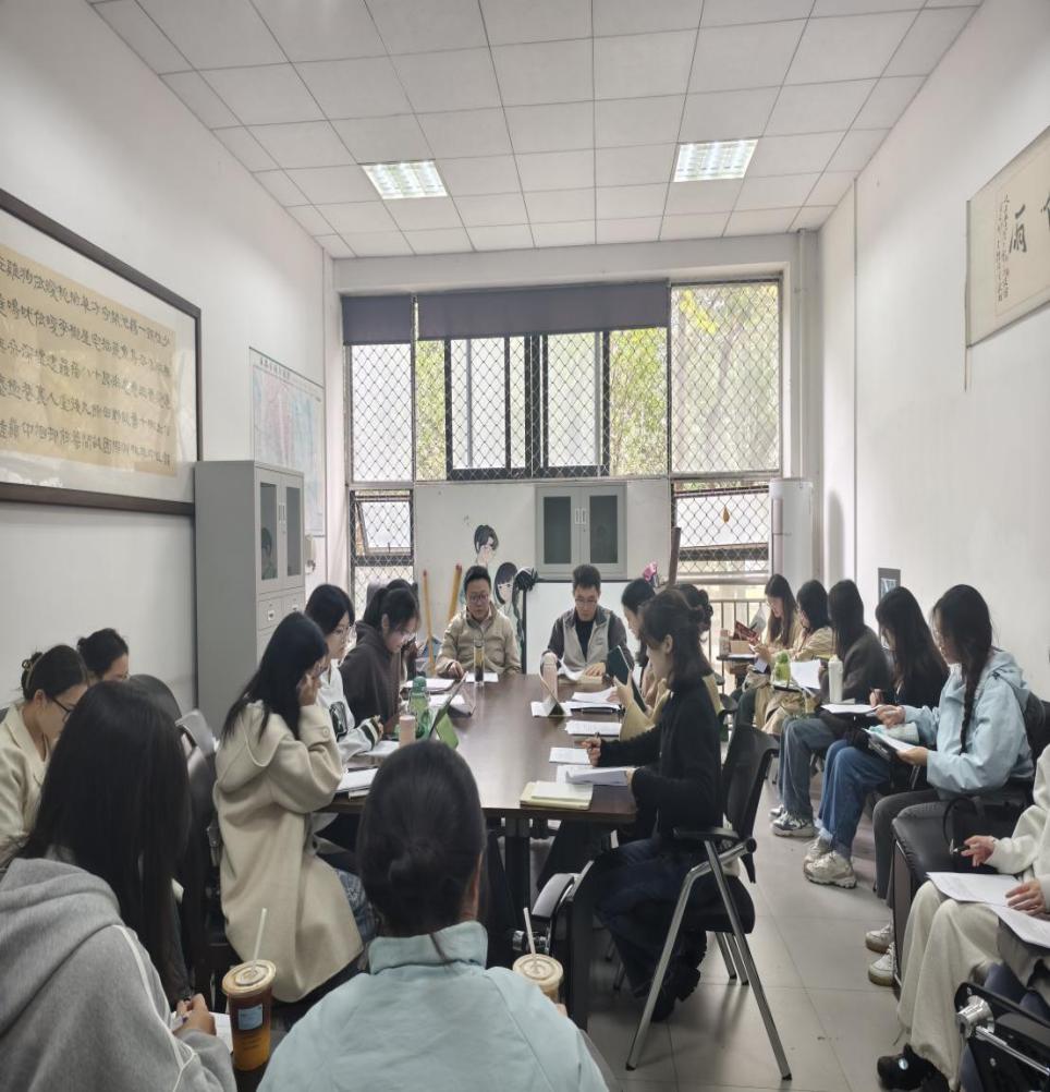 11月14日14时,我院中国古典文献学专业第八期“丽泽”读书会于6A111顺利举行。本次读书会由2023级研究生熊希、2023级研究生谭佳领读,中文系王珂老师、中文系王燕飞老师、中国古典文献学专业一、二年级硕士研究生参与了讨论。读书会由2023级研究生杨婷和余茹兰主持。