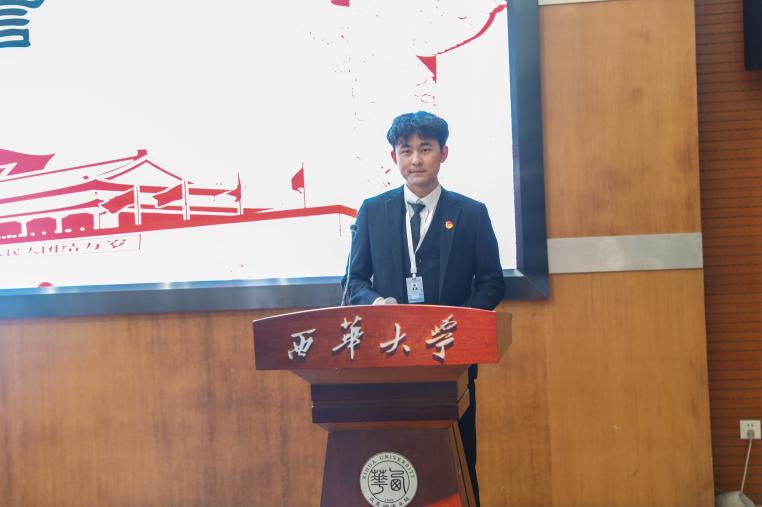 学院第六届团委学生会主席团成员伍思丞作为代表发言。他对团学组织全体新成员的加入表示热烈的欢迎。他围绕协作、挑战、创新三大关键词,回顾了2024年,全体团学成员秉持大团学思维,坚持沟通协作,取得优异成绩。伍思丞号召全体团学干部应保持谦虚谨慎,不骄不躁,以更加饱满的热情和更坚定的信念投入到未来的工作中去。