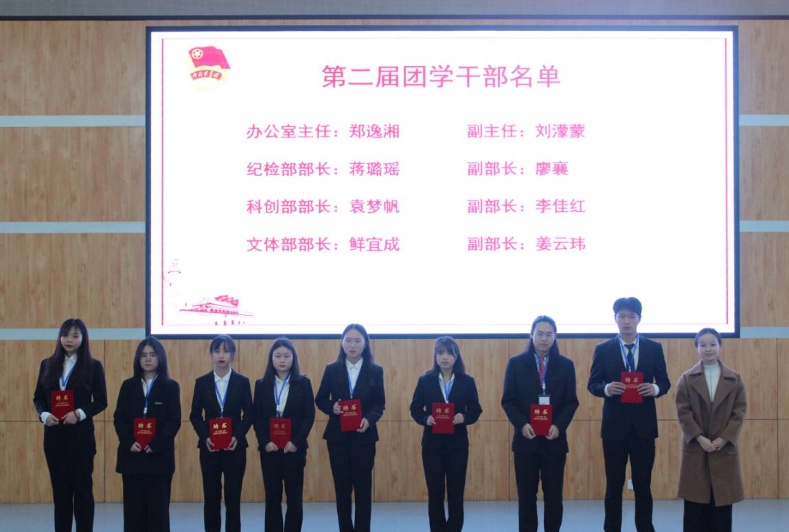 在全体起立合唱共青团团歌后,学院团委书记陈柄志老师宣读了第二届团委学生会、研究生会干部名单,并邀请学院老师先后为干部们颁发了聘书。随后,学院团委学生会、研究生会干部进行了宣誓,学院团委副书记丁秦领誓。