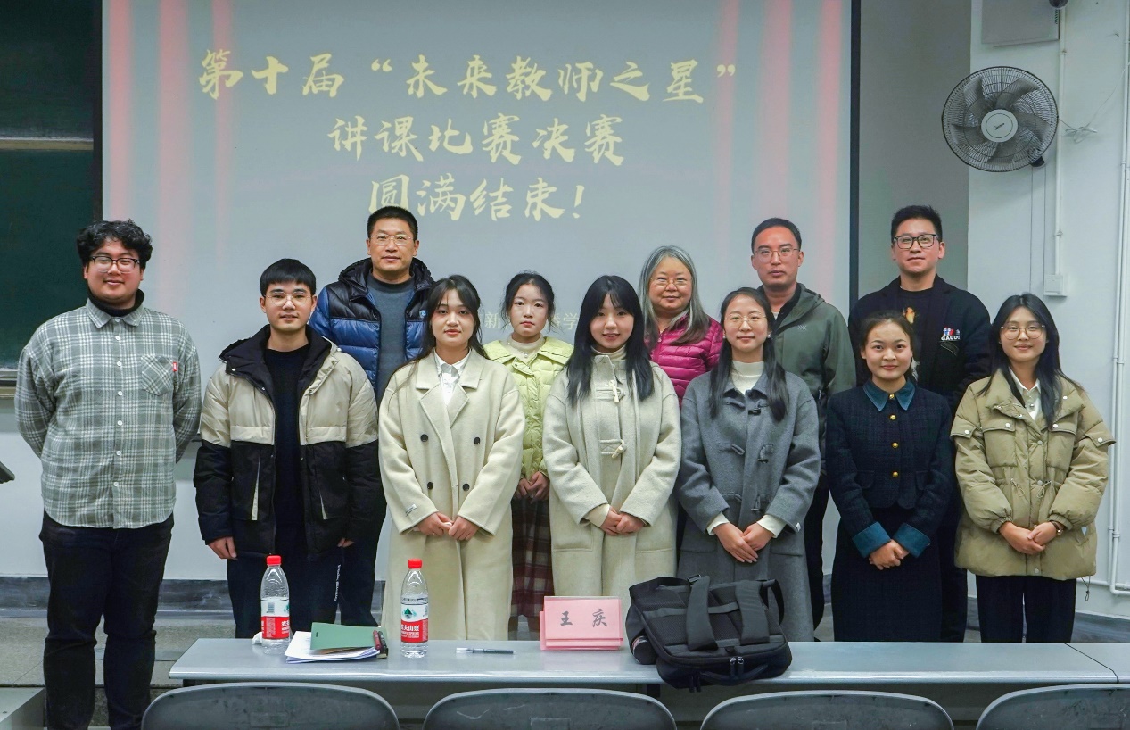 活动尾声,选手与评委老师进行了合影留念。最后,文新学院第六届“校友杯“专业技能大赛之第十届“未来教师之星”讲课比赛决赛在热烈的掌声中圆满落幕。这不仅是一场比赛,更是一个教学实践的演练场,让学生们在实践中成长,在竞争中提升,为未来的教育事业储备了优秀的人才。相信在今后的学习和实践中,同学们会带着这份收获,在教育的道路上越走越远。