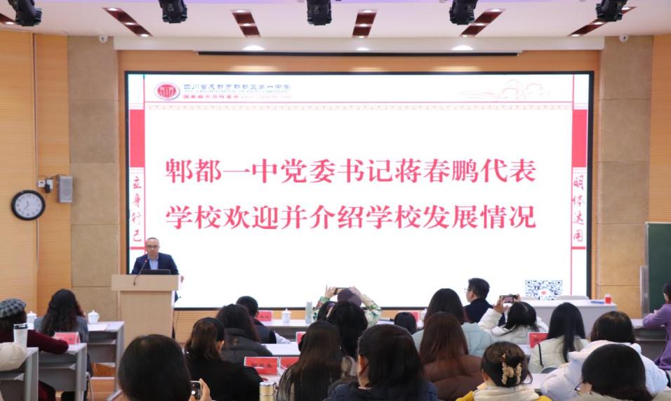 郫都一中校长杨祖琴首先介绍到,郫都一中是一所历史悠久、文化厚重的省一级示范性普通高中。2019年开始,在郫都区区委区政府的大力支持下,开始改扩建工程,历经三年多的时间,于去年全部完工,因此,今天呈现在大家面前的便是扩建之后,集古朴典雅与现代气息于一体的美丽校园。随后,杨祖琴校长就郫都一中基于“三课一体”教改模式下的“思维教育”育人模式与到会老师和同学进行亲切交流。