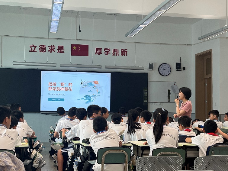 课堂执教展风采:首先由教科院附中庞姝老师执教《捡拾“我”的那朵别样朝花》一课。庞老师直接展示出本堂课的学习目标,紧接着以话题导入的方式为切入口入题,课上,通过学习任务群的形式,带领学生阅读《五猖会》。最后,通过讨论的方法总结出阅读办法并要求学生自行选择《朝花夕拾》中的文章进行阅读。整堂课贴近新课标,注重任务群的创建,注重学生的主体地位,同时充分为学生创设了“主体参与,和谐发展”的教学氛围,体现了以学为主的教学理念,取得良好的教学效果。