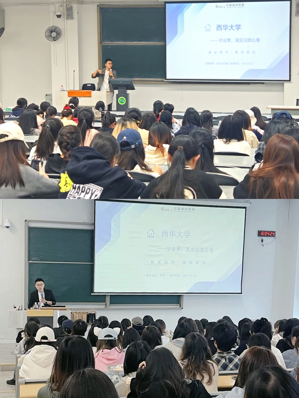3月25日、27日,学院为宜宾校区与本部校区400余名学生开展求职技能专题指导活动,特邀维纳教育首席面试官朱培担任主讲。活动以“理论精讲+情景模拟+个性诊断”多维模式展开,助力学生破解求职难题,提升职场竞争力。