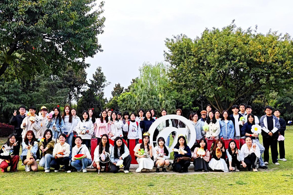活动尾声,在“我爱西华”的地标旁集体合照,同学们或举起玩偶或手比动作,将盎然的春意与蓬勃的朝气永久定格,绘就成独一无二的青春画卷。
