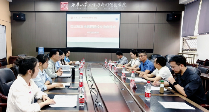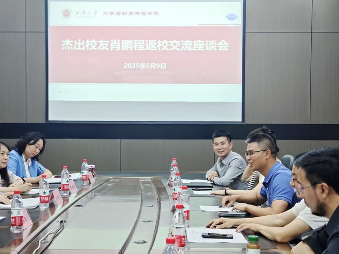 5月9日下午,2003级政史教育专业杰出校友、深圳市章鱼时代科技发展有限公司创始人兼CEO肖鹏程携公司团队一行返校交流,于6A-108会议室开展座谈会。学院党委书记张雯欣、院长潘殊闲等领导班子成员、中文系副主任蒋林欣、党政办主任杜昊静、学工办主任任焦阳、团委书记毛雪花、学生代表曹渝及企业嘉宾共同参会,党委副书记徐攀主持会议。