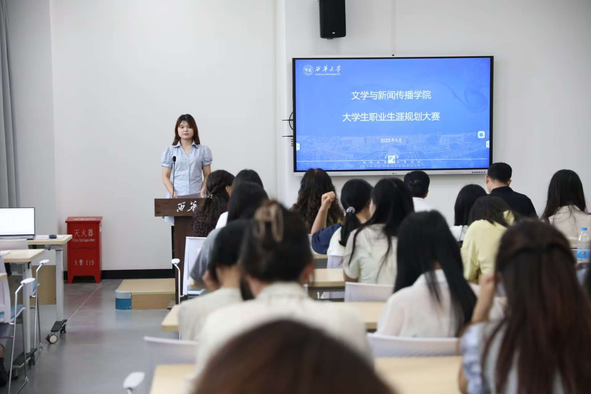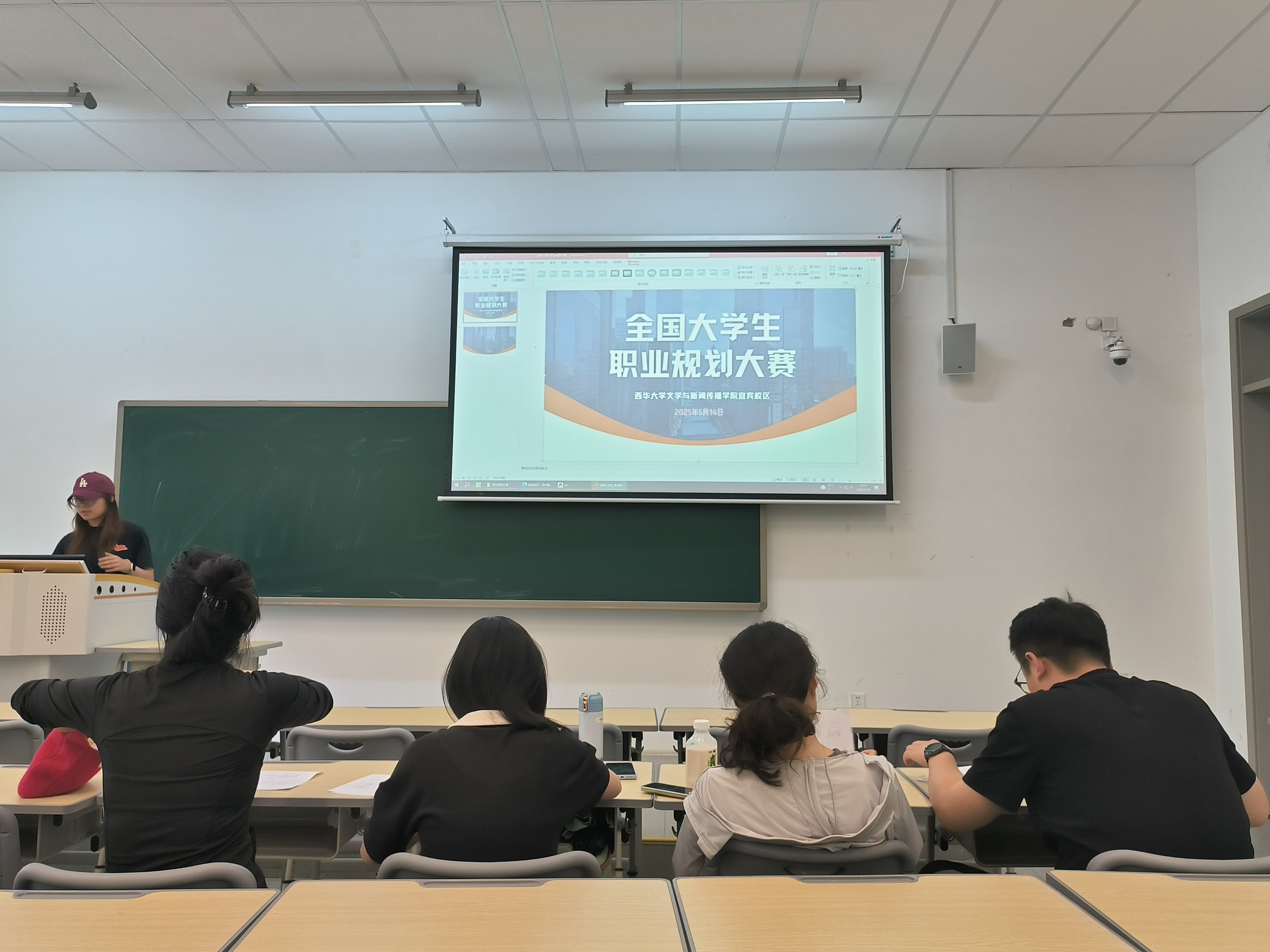 为引导大学生树立正确的职业观、科学规划职业生涯、提升就业竞争力,5月15日,文学与新闻传播学院大学生职业规划大赛初赛在五食堂423会场组织开展。学院党委副书记徐攀,学工办主任(代理)任焦阳,辅导员徐薇、廖秀美、陈柄志作为评委出席本次比赛。