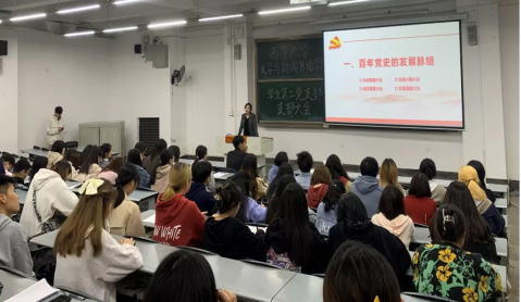 4月底,学院各学生党支部组织开展了以“党史学习教育”为主题的组织生活会。其中校党委常委、宣传部长山述兰参加了学院学生第二党支部在6C108召开的支部大会,并为支部成员讲了一堂党史学习专题党课。山述兰部长从电视剧《觉醒年代》切入,指出历史是最好的教科书、最好的营养剂、最好的清醒剂。欲知大道,必先知史,我们要学好党史这门必修课,她表示,青年学子要从百年党史“救国、兴国、复国、强国”的主线中,去感悟百年党史的青年的担当。历史赋予了青年人责任和担当,强国大业的接力棒如今交到了年轻一代的手中,只要年轻一代有理想有能力有担当,国家就有前途,民族就有希望。作为一名青年党员,要不断对自己提出更高的要求,要有坚定的理想信念、深厚的为民情怀和严明的纪律规矩。山述兰强调,提高党性修养永远在路上。
