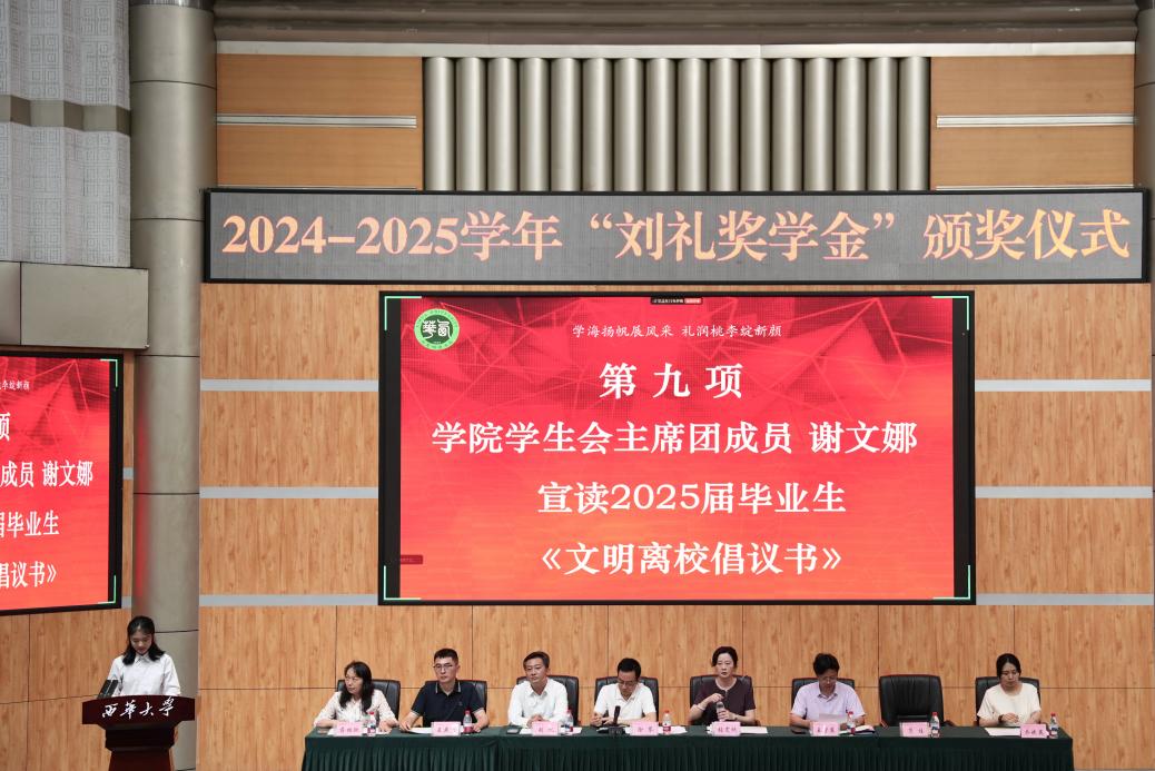 2025年5月23日中午,西华大学bw西汉姆联在四教报告厅隆重举行2025届优秀学生表彰大会暨“刘礼奖学金”颁奖仪式。学院党委书记张雯欣、学院副院长王学东、副院长范佳、学院优秀校友刘礼、中文系主任王燕飞、传媒系主任乔晓英、中文系副主任蒋林欣以及宜宾校区参会的老师出席会议。全体辅导员、获表彰的同学代表、毕业生优秀代表、各年级同学代表参加会议,学院党委副书记徐攀主持会议。