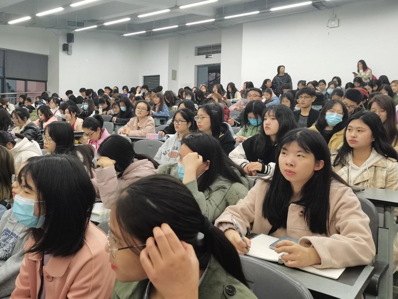 宣讲会上,张老师分享的几个小故事让现场氛围轻松愉悦,同学们都认真听讲,颇具兴趣。