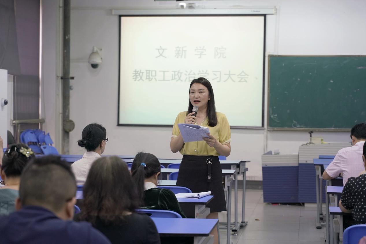 王莉书记带领全体教职工学习了“陈宝生部长在教育部党史学习教育动员大会上的讲话精神”以及“彭清华书记在全省党史学习教育动员大会上的讲话精神”。王莉书记指出,教职工要把握好学史明理、学史增信、学史崇德、学史力行的目标要求,悟创新理论伟力,坚守立德树人初心,奋力开创学院“十四五”教育发展新局面,为治蜀兴川贡献力量。