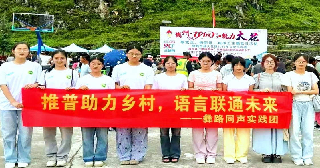 近日,我院彝路同声实践团入围教育部语用司和团中央青年发展部联合开展的2025年“推普助力乡村振兴”全国大学生暑期社会实践志愿服务活动参与协同团队。为深入调研少数民族地区普通话使用情况62975团队一行九人深入四川省凉山州越西县大花镇多个村庄,开展为期一周的暑期三下乡社会实践活动。本次活动紧扣“推广国家通用语言文字”与“公益支教”双核心,通过问卷调查、入户访问、推普小课堂等多种形式开展各类活动,旨在深化共同语认识,提升普通话使用水平,以实际行动助力乡村教育振兴。