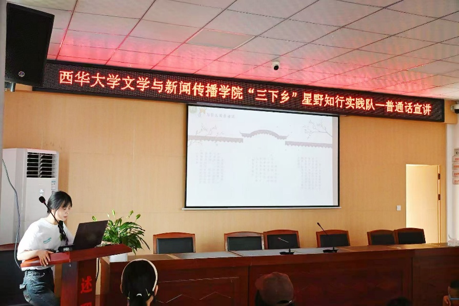 课堂上,实践队员先引导孩子们用普通话进行自我介绍,再通过四川方言与普通话对比的视频,激发他们探究语言差异的兴趣,还讲解了普通话的起源与发展,让孩子们对普通话有更立体的认知。