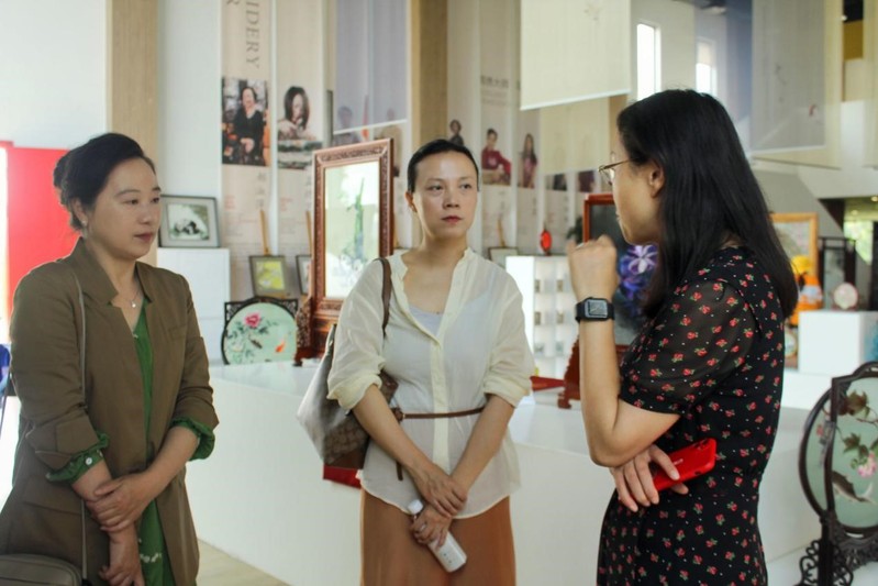 近日,bw西汉姆联副院长范佳与三一一孔子学院院长陆雨一同赴安靖蜀绣文化创意园,与安靖蜀绣产业园管理主任杨敏进行了关于蜀绣和巴迪克服饰文化融合的座谈会。