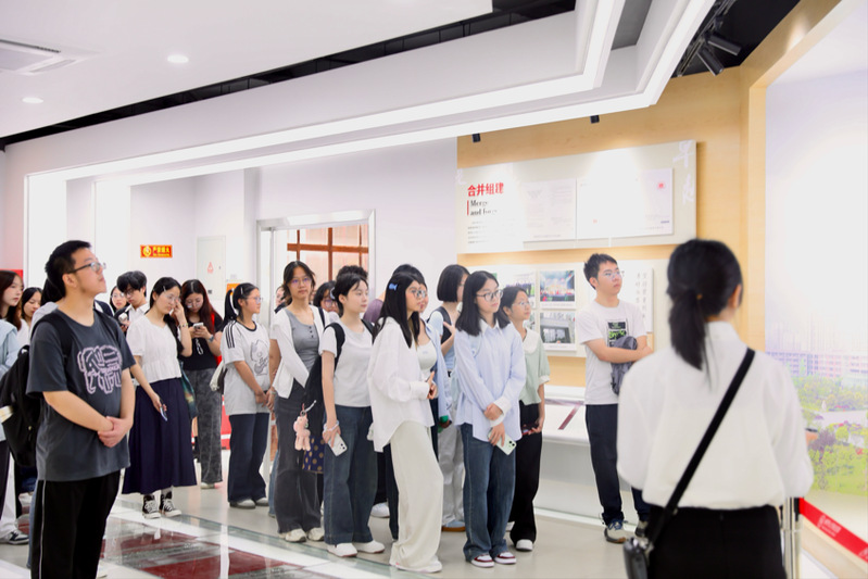 跟随讲解员的脚步,一幅幅校史画面徐徐展开:从1960年建校时的手绘校景,到1983年更名的庆典瞬间,再到2003年定名西华大学的历史性时刻。直观的画面让大家仿佛“穿越”时光,新生们还凑近触摸模型的金属部件,真切感受老一辈西华人“扎根实业、服务社会”的坚守。