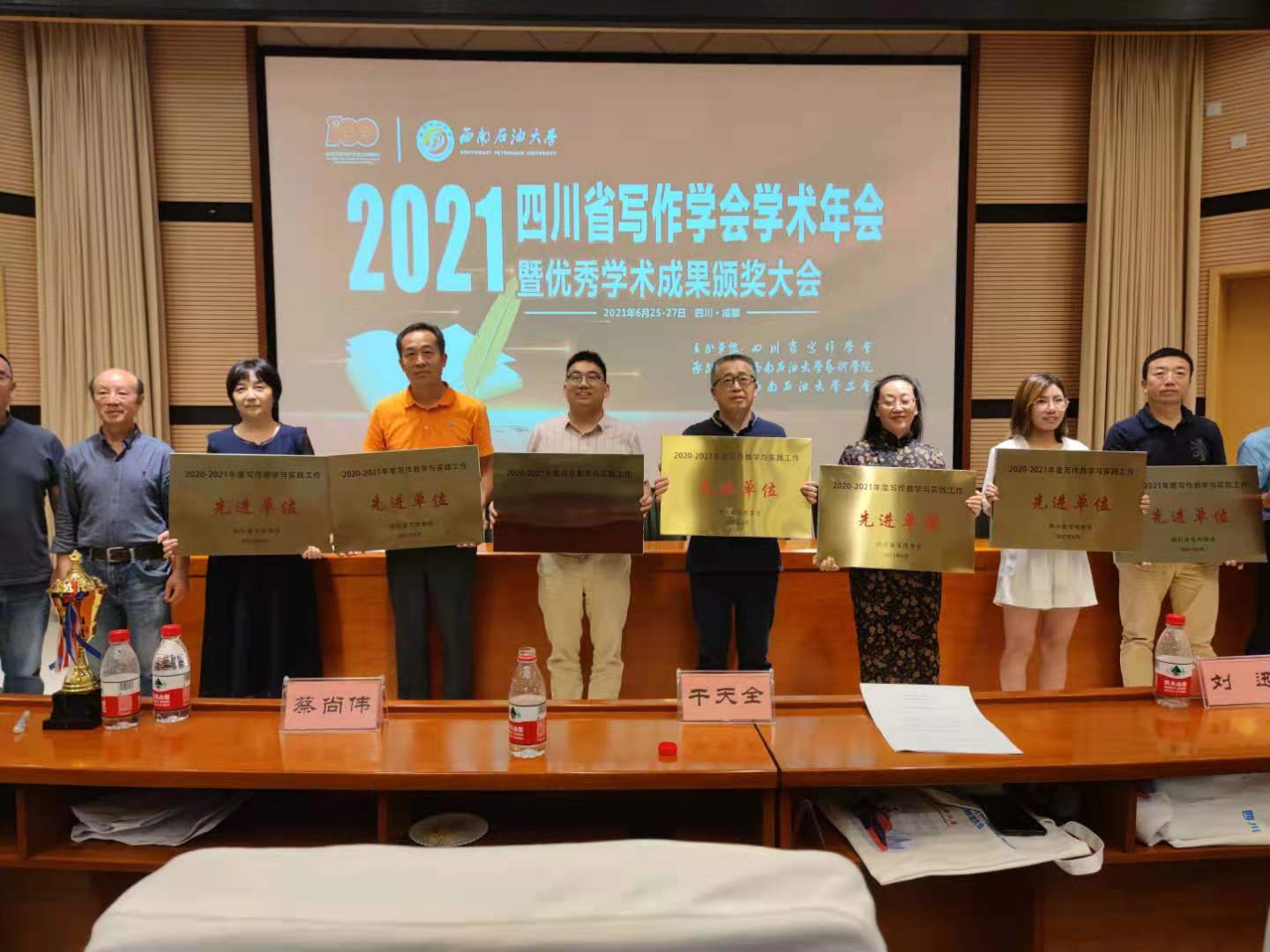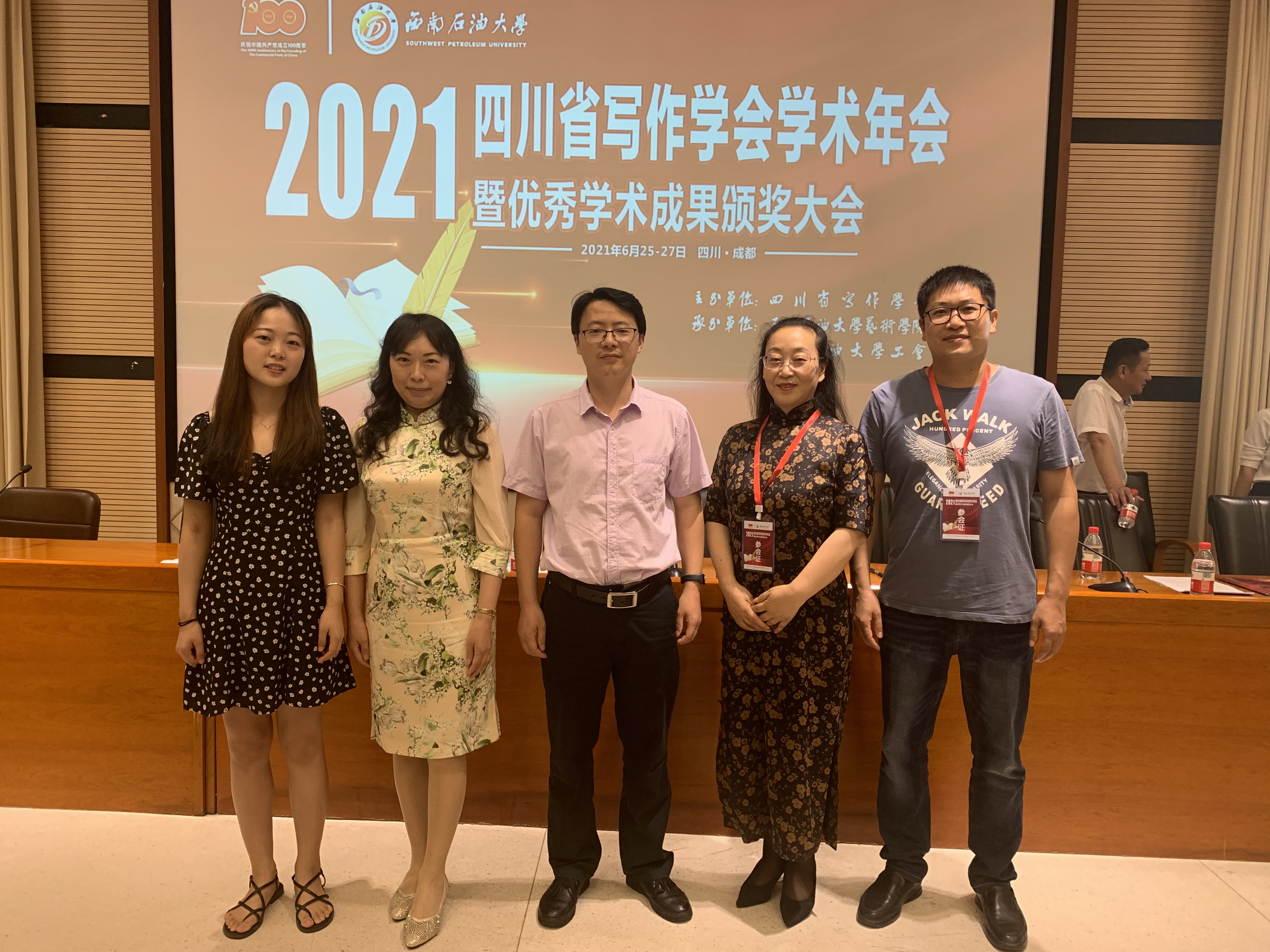 6月26至27日,四川省写作学会2021年学术年会暨优秀成果颁奖会在西南石油大学举行。来自四川大学、电子科技大学、西南交通大学、西南财经大学、四川农业大学、西南石油大学、西南民族大学、成都理工大学、四川师范大学、西华师范大学、西华大学学等40多所高校的98名会员代表参会。西南石油大学党委副书记衡彤、西南石油大学艺术学院院长焦道利等校、院领导,四川省写作学会会长干天全及学会主要负责人,四川省社科联、四川日报集团、四川省宣传文化部门的嘉宾出席会议。文新学院王学东副院长与李晓华、蒋林欣、王万洪等老师及部分研究生参加会议。