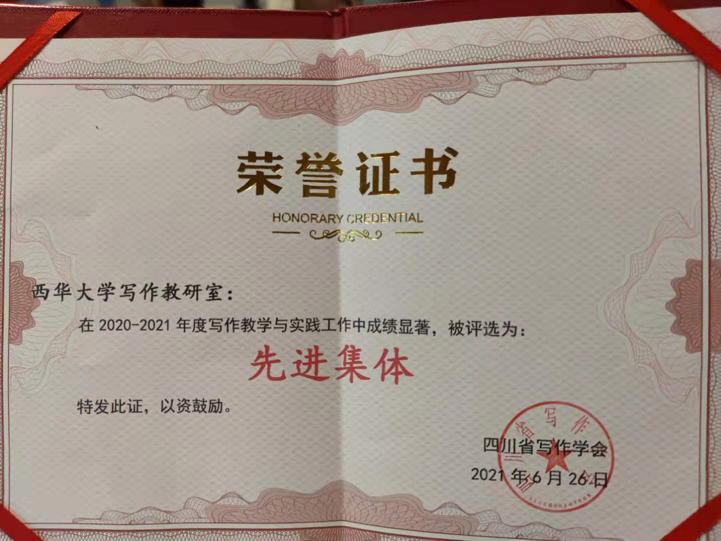 近年来,在学会、学校和学院的大力支持下,文新学院写作课程建设、教学科研工作均取得了长足的进步,于2017年11月4日成立的写作教研室顺应潮流,展开了一系列教研工作。李晓华教授牵头申报的《写作》立项为西华大学首批校级一流本科课程(2020)和四川省一流本科课程(2020),正在申报国家级一流本科课程(2021);创建“西华写作社”微信公众号;申报写作教学团队;建设全校通识教育核心课程《写作与沟通》。教研室王国巍、李咏梅老师承担了多门写作课程的教研任务,多次参加省内外学术会议,在多家期刊发表教研成果;王万洪老师持续推进写作学理论、写作教学法研究和教材建设项目,在上海大学创意写作研究中心访学一年,主持多项写作课题研究,建设创意写作工作室。2020年,教研室李晓华、王国巍老师在年度考核中双双被评为优秀。谢应光院长多年来一直大力支持的写作课程的发展,将借助汉语言文学专业推进建设国家一流本科专业的东风,继续支持成立创意写作中心,这将进一步促使写作学科为国家一流本科专业建设服务,为我院、我校学子提升写作能力、提升就业竞争力服务。